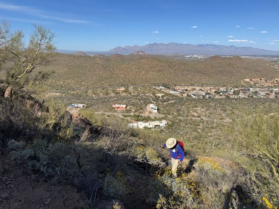 On the descent we aimed directly towards the vehicles and the going was of similar difficulty, but the route was more efficient. There were some loose rocks and some bushwhacking, but nothing really worth noting. Our round trip time for the unnamed peak was just over an hour. I still had a couple hours of daylight to kill, so decided spontaneously to add Cat Mountain into the itinerary, whereas Matthias would take his time driving back to Phoenix.