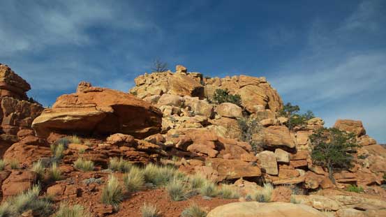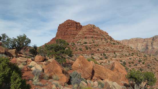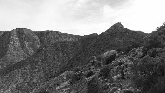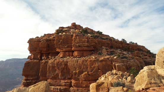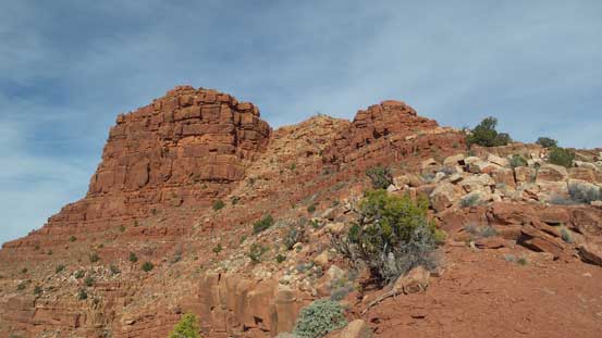 After dropping down the north ridge of Escalante Butte to Escalante/Cardenas saddle I quickly started the opposite side. The ridge traverse was very scenic and I had to stop constantly for photos. There’s a minor highpoints along the way which I easily bypassed on the right (south-east) side using wide ledges. Going up the broad SW Ridge I stayed more-or-less on the crest until cresting the upper portion of the south ridge.