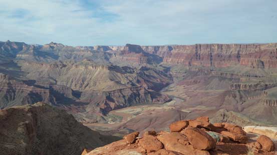 Cardenas Butte is one of those rugged buttes below the south rim of Grand Canyon in the far eastern side of the national park. Those buttes have been gazed by hundreds of thousands of people every year from the observation tower at Desert View, and yet, only the selected peak-baggers would bother to research their names. Cardenas Butte is probably one of the easiest summits in Grand Canyon with the easiest route rated at a mere Class 2 scramble, along with a well-maintained trail (Tanner Trail) for access. For the more adventurous folks it also makes a fun scramble traverse when combining with the nearby Escalante Butte, and that’s exactly what I did.
