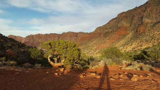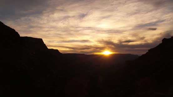 On the descent I did not bother to search around neither so basically went down whatever that looked feasible back to the intersection of the S. and SW Ridges. And then I bailed down the broad south slopes, taking a direct line down towards Tanner Trail far below. There were minor rock bands but nothing troublesome. Once back to the trail I changed my footwear back to the sneakers and leisurely plodded back to the Tanner Saddle. At this point I still had about an hour till sunset but given my physical state there’s no way I could make back to Lipan Point before that so to take the most advantage of the views I opted to wait for sunset at the saddle. Unfortunately it was a little bit too cloudy so the views weren’t as good as I was hoping for.