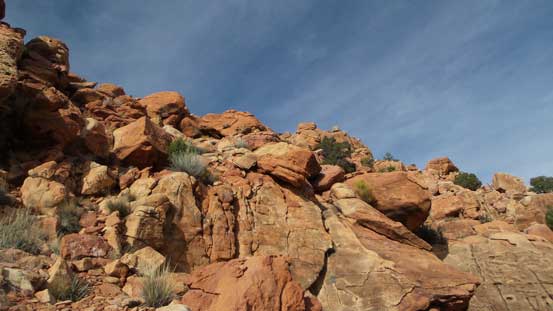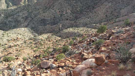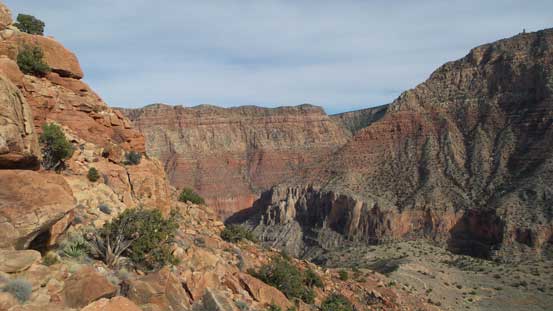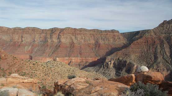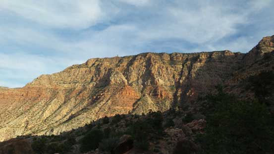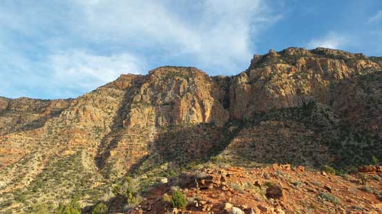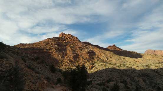 After dropping down the north ridge of Escalante Butte to Escalante/Cardenas saddle I quickly started the opposite side. The ridge traverse was very scenic and I had to stop constantly for photos. There’s a minor highpoints along the way which I easily bypassed on the right (south-east) side using wide ledges. Going up the broad SW Ridge I stayed more-or-less on the crest until cresting the upper portion of the south ridge.