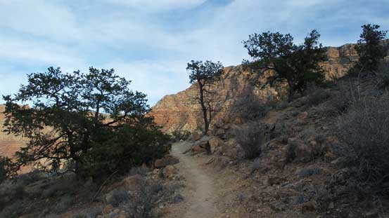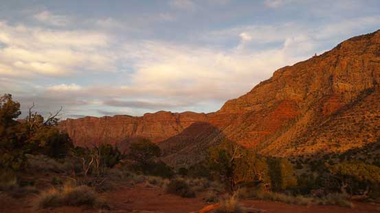 On the descent I did not bother to search around neither so basically went down whatever that looked feasible back to the intersection of the S. and SW Ridges. And then I bailed down the broad south slopes, taking a direct line down towards Tanner Trail far below. There were minor rock bands but nothing troublesome. Once back to the trail I changed my footwear back to the sneakers and leisurely plodded back to the Tanner Saddle. At this point I still had about an hour till sunset but given my physical state there’s no way I could make back to Lipan Point before that so to take the most advantage of the views I opted to wait for sunset at the saddle. Unfortunately it was a little bit too cloudy so the views weren’t as good as I was hoping for.