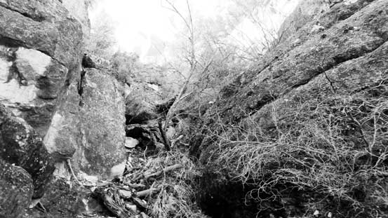 Traversing into the first gully. It’s a big one that cannot be missed.