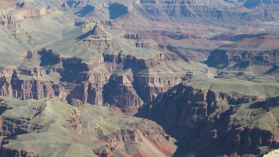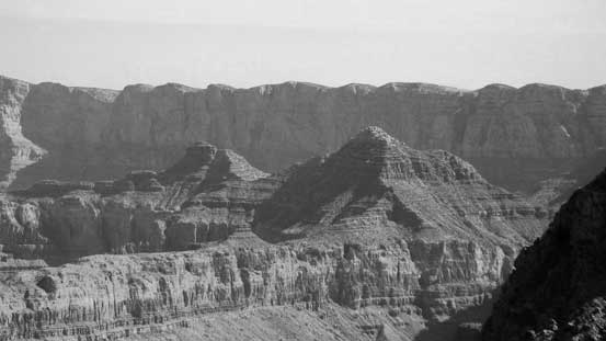 Jupiter Temple, Gunther Castle and other peaks upstream in the Grand Canyon