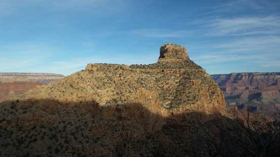 For those into peak-bagging, Coronado Butte is advertised as one of the best in Grand Canyon’s south rim. Elevation wise this is one of the taller buttes with its summit height almost the same as the south rim’s, while position wise Coronado Butte sits roughly halfway between the Village and the Desert View observation tower. There’s a decent trail heading down (New Hance Trail) from the rim but it’s unmarked on the park’s map and in fact, there’s even a “no parking” sign at the trail-head to discourage anyone who wants to visit this place. For that matter you’d have to park at one of the few pull-outs nearby which can fit only 3 to 4 vehicles so there’s plenty of solitude around this place. On top of that, the easiest route to reach this summit goes at “3rd class” scramble with plenty of route-finding challenges and is certainly not for the faint-of-heart. Summing it up this sounds just like the adventure I was looking for so on the 3rd day of my stay in Grand Canyon, I knew I had to check this one off.