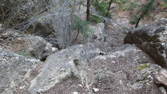 Traversing into the first gully. It’s a big one that cannot be missed.