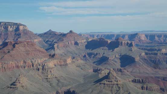 Jupiter Temple, Gunther Castle and other peaks upstream in the Grand Canyon
