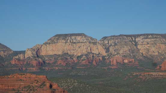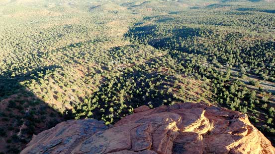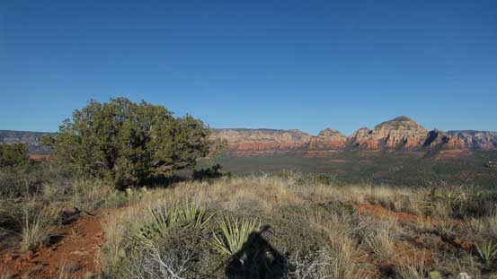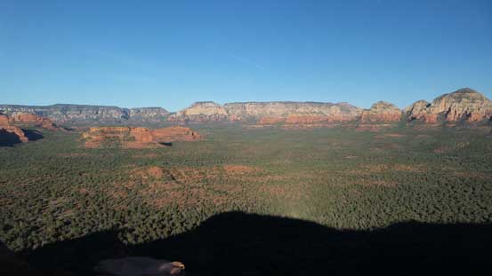 There’s not much to document except that once starting up the trail it was still very hot. I kept my pace well below “normal” in order not to get overheated. Once getting on top of the mesa plateau (with a few hands-on steps near the top) I decided to walk around the edge in a clockwise direction to check out the views. Initially it was pretty exciting but soon I realized it’s going to take quite a while and the views wouldn’t change by much, so took a short-cut back to the trail. I settled on the eastern edge for a while but decided to keep walking around and see.