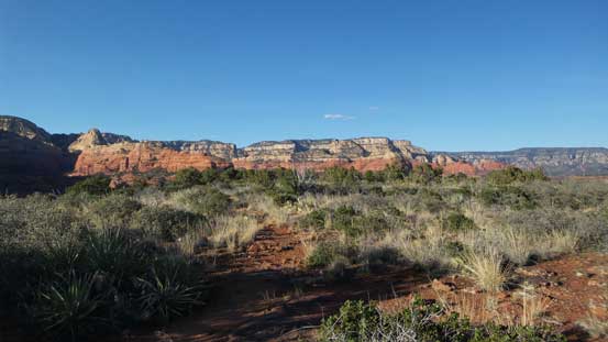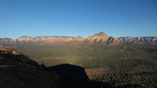 There’s not much to document except that once starting up the trail it was still very hot. I kept my pace well below “normal” in order not to get overheated. Once getting on top of the mesa plateau (with a few hands-on steps near the top) I decided to walk around the edge in a clockwise direction to check out the views. Initially it was pretty exciting but soon I realized it’s going to take quite a while and the views wouldn’t change by much, so took a short-cut back to the trail. I settled on the eastern edge for a while but decided to keep walking around and see.