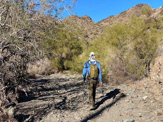 Elephant Back Mountain is one of those small, but officially-named summits that does not boast any mountaineering interest. The peak might appear innocent, but covered in chollas and choss. In fact, this was probably the worst peak that Adam and I tagged in this Christmas-New Year trip. Earlier in the day we had scrambled Dos Picachos based of “no beta”. We were quite satisfied but the day was still young and we noticed the name “Elephant Back Mountain” on the maps. We figured that to add this summit into the day wouldn’t cost more than 2 extra hours. The decision was made to make a direct dash from the bottom of Dos Picachos towards Elephant Back Mountain.
