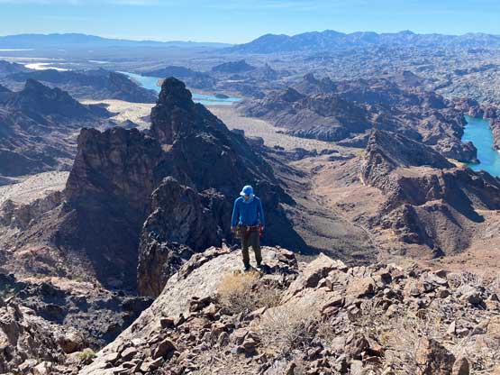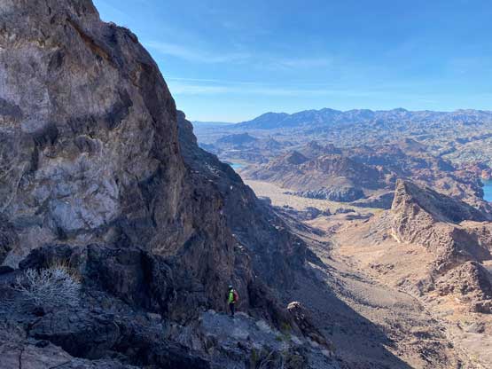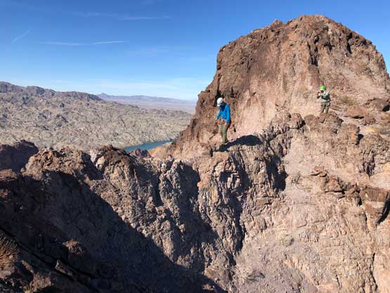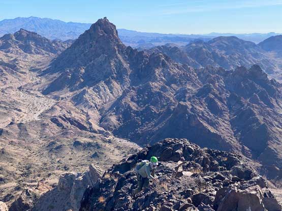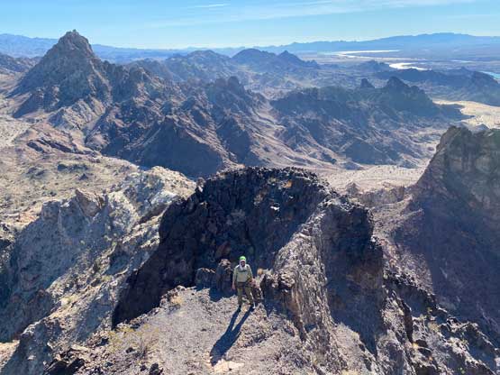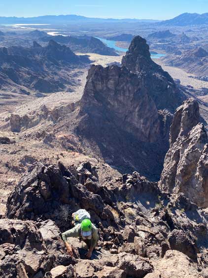 “Gold Dome” is a gem in the desert but probably because of the unofficial name this peak is largely unknown. This peak locates in an area called “The Needles” about halfway between Lake Havasu City, AZ and Needles, CA. The area is riddled with small but pointy summits. “Gold Dome” is one of the taller peaks that also boasts an iconic profile. The easiest route goes at “class 4” and the scrambling has some very aesthetic positions. In fact, this turns out to be one of Adam’s favourate desert peaks and that says something considering the quantity he’s covered in this area.