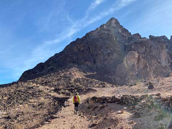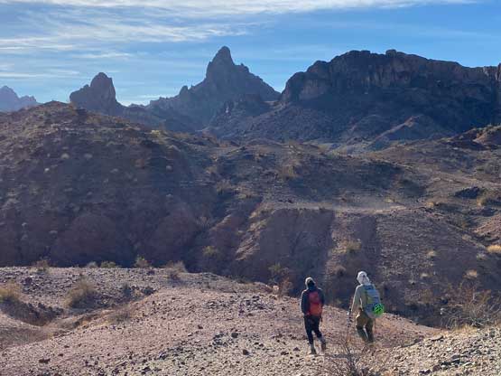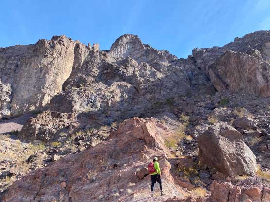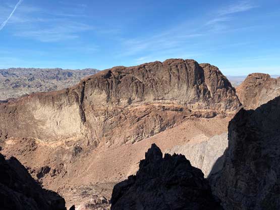 This was one group of peaks that I had done absolutely no research whatsoever and I fully relied on Adam and Sean’s lead as they had read Stav Basis and some others’ trip reports. Unfortunately none of those trip reports came with a GPX file. In the end we likely have put up a new technical route on “South Dome” as well as an infrequently ascended, if not new route on “Gold Dome”. Our route-finding errors eventually turned out to be “good things” that made this trip extremely memorable and satisfying but that usually would not be the case. The approach to the pass between “Gold Dome” and “Havasuper Peak” was long, arduous and confusing at times. Again, I just followed Adam and Sean’s lead plodding into and out of one wash after another. The micro-terrain’s up-and-downs had accumulated to at least 100 m and we weren’t even getting any closer. We switched from one wash to another and even scrambled through some canyons, but eventually we found the old roads that led to the Gold Dome mine at Gold Dome/Havasuper pass. Looking at our own GPX track from home I’m not confident that we had taken the most efficient path, but any route would involve micro-terrain and I’m certain about that.