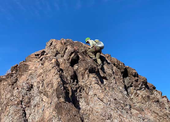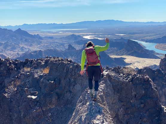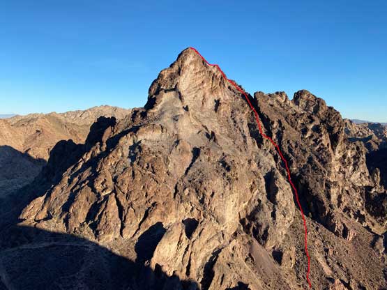 “Gold Dome” is a gem in the desert but probably because of the unofficial name this peak is largely unknown. This peak locates in an area called “The Needles” about halfway between Lake Havasu City, AZ and Needles, CA. The area is riddled with small but pointy summits. “Gold Dome” is one of the taller peaks that also boasts an iconic profile. The easiest route goes at “class 4” and the scrambling has some very aesthetic positions. In fact, this turns out to be one of Adam’s favourate desert peaks and that says something considering the quantity he’s covered in this area.