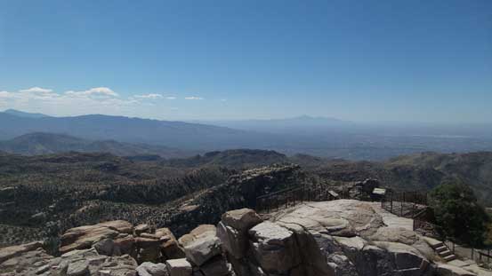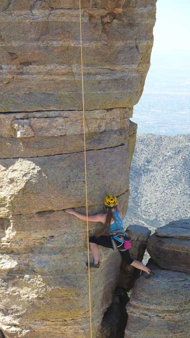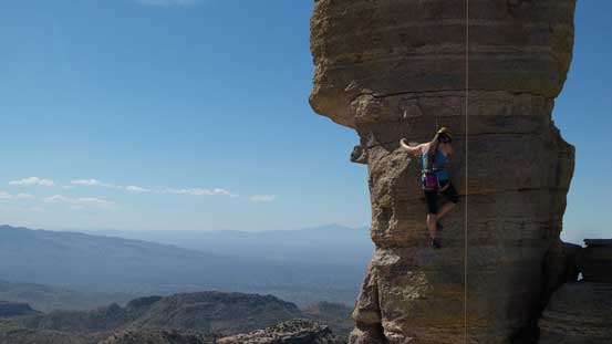 Hitchcock Pinnacle is by no doubt the most popular rock climb near Mt. Lemmon north of the city of Tucson. The access is by Santa Catalina Highway (aka. Mt. Lemmon Highway) and the photogenic pinnacle is right beside a roadside tourism area called “Windy Point”. There are a couple routes ranging from 5.7 to 5.10 although most come up from the north side 5.7 route which is exactly the one I climbed. For obvious reasons this was not on my plan as I came down to Arizona by myself but I did bring the climbing gears. At the parking lot I met two climbers from Chicago and then they kindly offered me a belay up this spire.