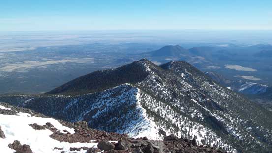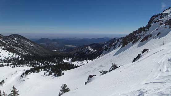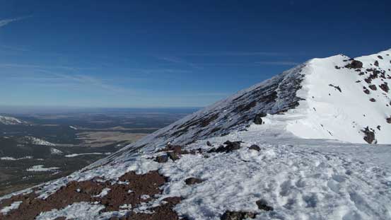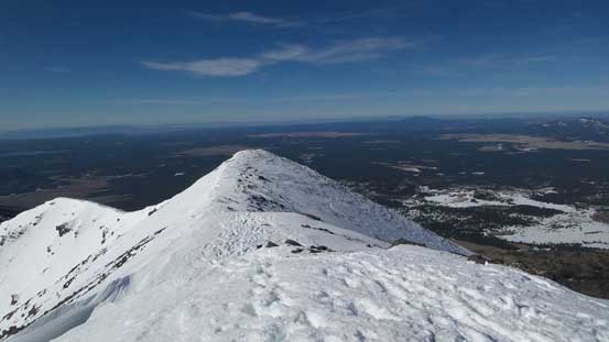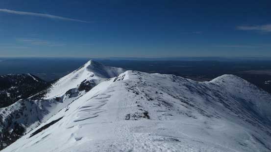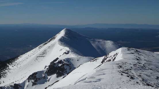 Like I mentioned above Humphreys Peak is a worthwhile objective, but itself is not worthwhile enough to motivate driving all the way down to Arizona. I had to combine it with plenty of other peaks to make a vacation road-trip. This was the 5th day of this past spring break vacation and earlier in the morning I had just bagged the nearby Agassiz Peak. The route I took for Agassiz Peak was a direct plod underneath Arizona Snow Bowl’s chairlifts while the route I planned to descend off Humphreys Peak would also be in the resort. Of course there are logistics when you cross into a resort land but by all means those are the most “obvious” routes to me, so would be the ones I took.
