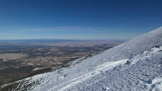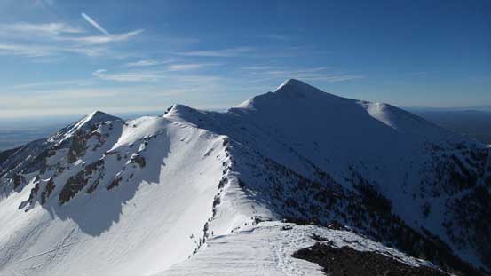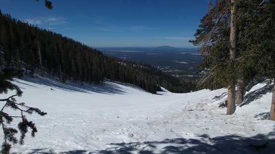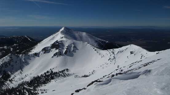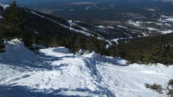 Like I mentioned above Humphreys Peak is a worthwhile objective, but itself is not worthwhile enough to motivate driving all the way down to Arizona. I had to combine it with plenty of other peaks to make a vacation road-trip. This was the 5th day of this past spring break vacation and earlier in the morning I had just bagged the nearby Agassiz Peak. The route I took for Agassiz Peak was a direct plod underneath Arizona Snow Bowl’s chairlifts while the route I planned to descend off Humphreys Peak would also be in the resort. Of course there are logistics when you cross into a resort land but by all means those are the most “obvious” routes to me, so would be the ones I took.