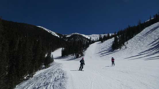After taking another long break at the col it’s finally the time to head down. I did not bother to follow the trail nor the aforementioned “winter route”, and instead I just took a direct beeline down the drainage and into the resort runs, and then easily boot-packed back to the parking lot.