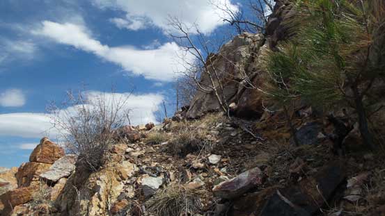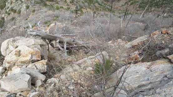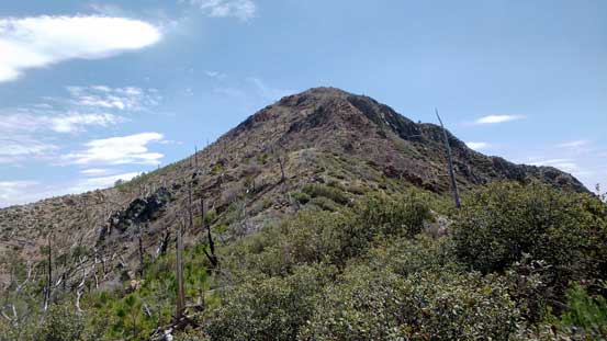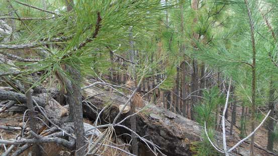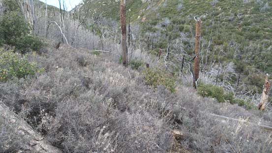The downhill grade on descent surely helped the bushwhacking but I still had to be very careful about the brambles. I more or less retraced the route I took and got back to Riley Saddle without too much loss of blood.