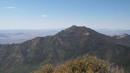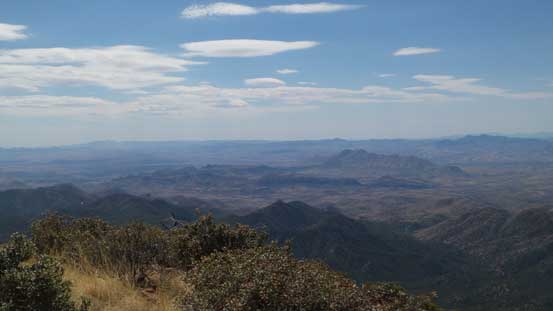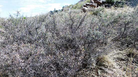 The primary objective in this trip was no doubt Mt. Wrightson so all of the approach and return are written in Mt. Wrightson’s trip report. There’s a sign right at Riley Saddle indicating “Josephine Peak –>” which I was very happy to see as signs like this usually indicate a good trail. However, I was wrong as the trail soon became overgrown and then lost in the dense vegetation. Much of the plants are bramble types which made some “fun” exploration considering I did not wear mountaineering boots, gaitors nor the bush gloves… But it’s all ’bout your attitude and determination as a peak-bagger and I certainly do not lack any of them, so after a long while of suffering and swearing I managed to power through the mess.