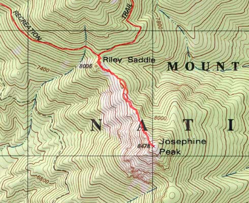 Josephine Peak ascent route from Riley Saddle. GPX DL