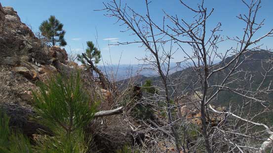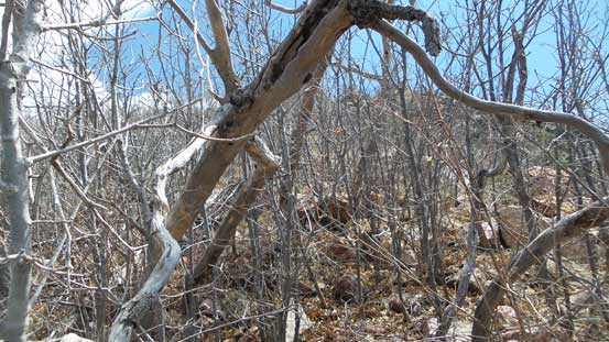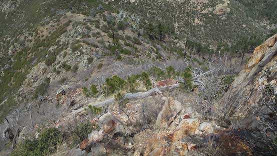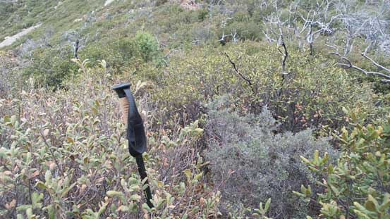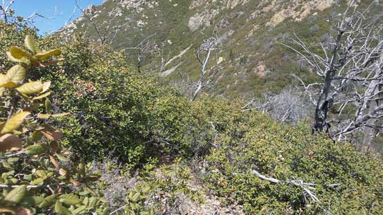 The downhill grade on descent surely helped the bushwhacking but I still had to be very careful about the brambles. I more or less retraced the route I took and got back to Riley Saddle without too much loss of blood.