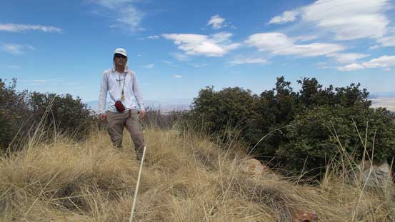 The primary objective in this trip was no doubt Mt. Wrightson so all of the approach and return are written in Mt. Wrightson’s trip report. There’s a sign right at Riley Saddle indicating “Josephine Peak –>” which I was very happy to see as signs like this usually indicate a good trail. However, I was wrong as the trail soon became overgrown and then lost in the dense vegetation. Much of the plants are bramble types which made some “fun” exploration considering I did not wear mountaineering boots, gaitors nor the bush gloves… But it’s all ’bout your attitude and determination as a peak-bagger and I certainly do not lack any of them, so after a long while of suffering and swearing I managed to power through the mess.