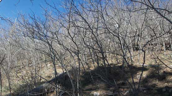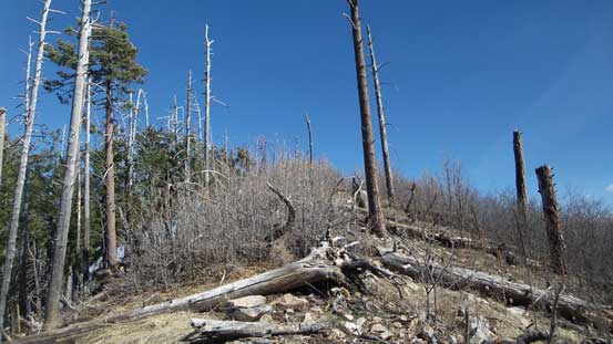 The parking was a little bit confusing as I could have started from the Palisade Ranger Station or another pull out before that which I forget about the name, but either way I could pick up the Incinerator Ridge access trail. Gaining Kellogg/Bigelow col was very easy using this trail and from the col I turned right. Not knowing where should I aim for I went too far on climber’s right (south) side and got myself into some 8-foot desert brambles. I tried pushing through but it’s nearly impossible so had to turn around and find another way, and I did manage to find a much-easier route on the north side. The summit was largely forested so there’s not much point in lingering.