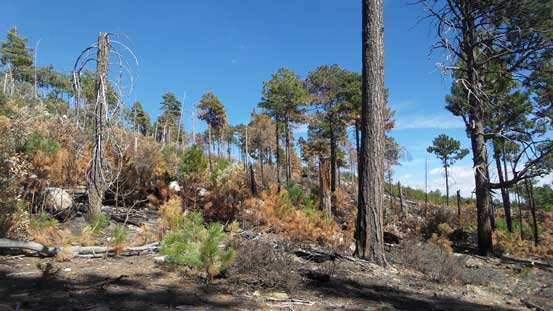 The parking was a little bit confusing as I could have started from the Palisade Ranger Station or another pull out before that which I forget about the name, but either way I could pick up the Incinerator Ridge access trail. Gaining Kellogg/Bigelow col was very easy using this trail and from the col I turned right. Not knowing where should I aim for I went too far on climber’s right (south) side and got myself into some 8-foot desert brambles. I tried pushing through but it’s nearly impossible so had to turn around and find another way, and I did manage to find a much-easier route on the north side. The summit was largely forested so there’s not much point in lingering.