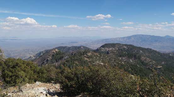 Kellogg Mountain is rather just a rounded bump attached to the east side of the taller Mt. Bigelow in the Santa Catalina Mountains north-east of the city of Tucson. The access is from Mt. Lemmon Highway and then the Incinerator Trail directly south of the Kellogg/Bigelow dual. From the col the ascent of Kellogg Mountain requires some brief off-trail travel but that’s about it. I did it as part of my peak-bagging slam along Mt. Lemmon Highway and earlier in the day I’ve already bagged Barnum Rock and Leopold Point.