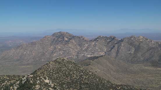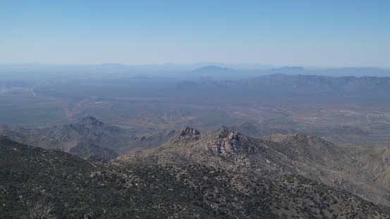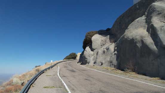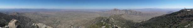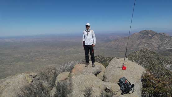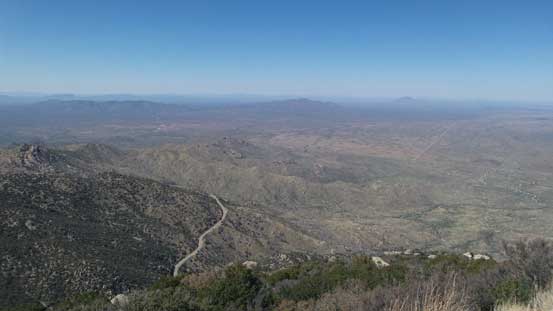 From the upper parking lot I firstly walked back for about 200 m along the road and then took a side branch towards the tourist’s observatory tower. I did not go into it and instead, left the road and went for a short scramble to the true summit in order to “claim” this peak. There was surprisingly some fun scrambling on granite rocks. I then went into the observatory tower and took the elevator to the second floor. Ironically that was the highest point anyone without permission could visit, but still not the highest point as the true apex would be the top of this building. Oh well.. Back down to the road I walked all the way to the southern edge of this large summit plateau and got some nice views looking towards Baboquivari Mountains before leisurely walking back to the parking lot.