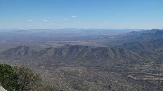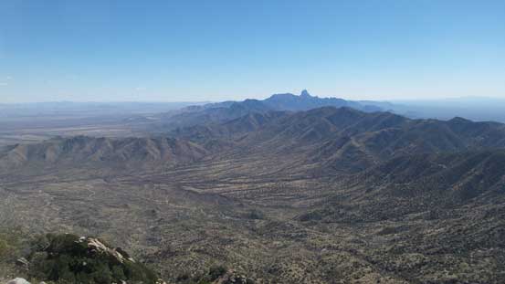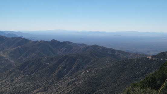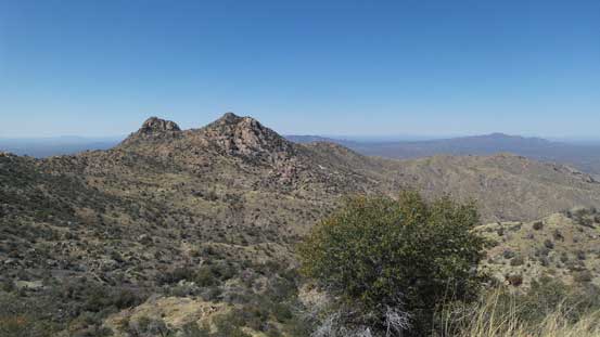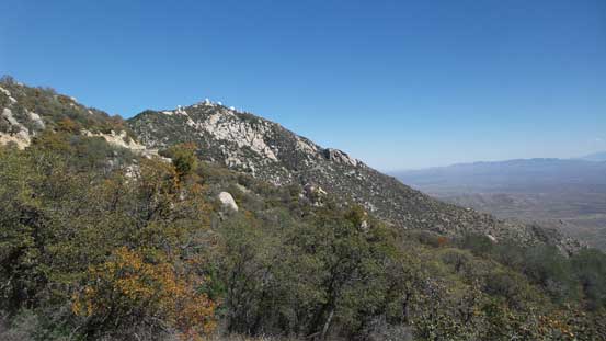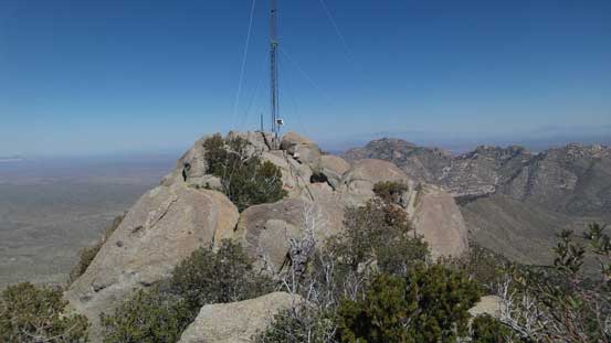 From the upper parking lot I firstly walked back for about 200 m along the road and then took a side branch towards the tourist’s observatory tower. I did not go into it and instead, left the road and went for a short scramble to the true summit in order to “claim” this peak. There was surprisingly some fun scrambling on granite rocks. I then went into the observatory tower and took the elevator to the second floor. Ironically that was the highest point anyone without permission could visit, but still not the highest point as the true apex would be the top of this building. Oh well.. Back down to the road I walked all the way to the southern edge of this large summit plateau and got some nice views looking towards Baboquivari Mountains before leisurely walking back to the parking lot.