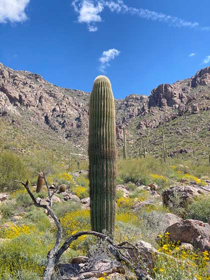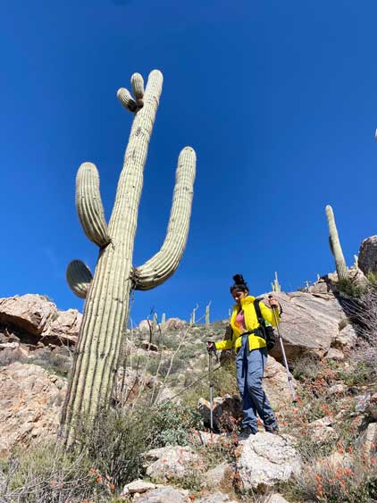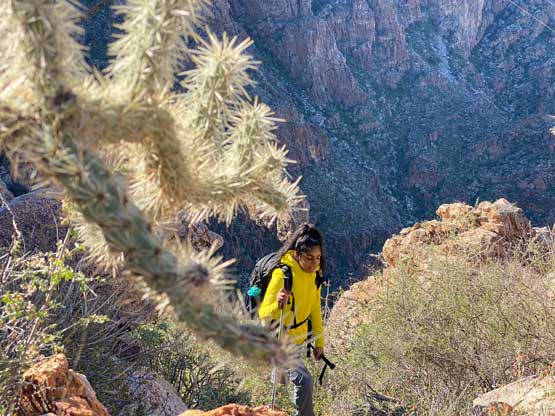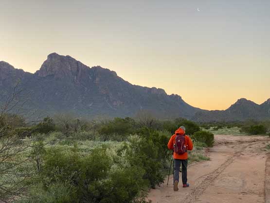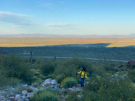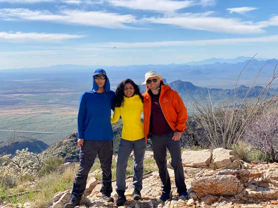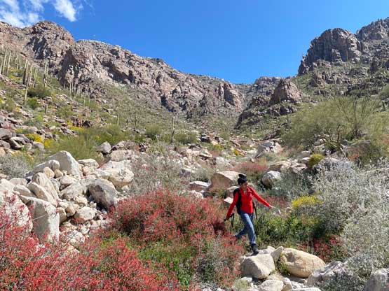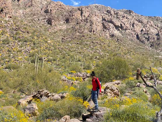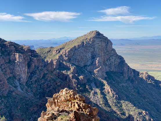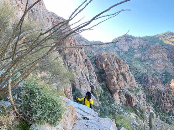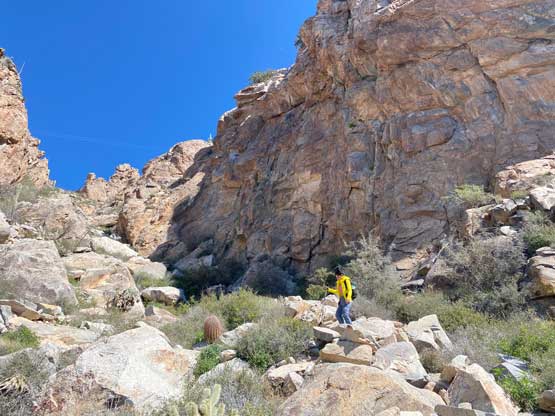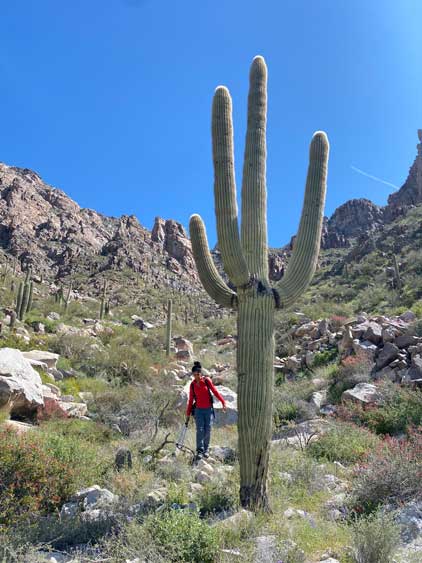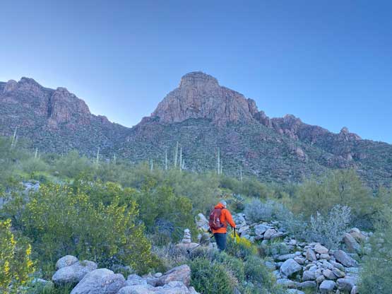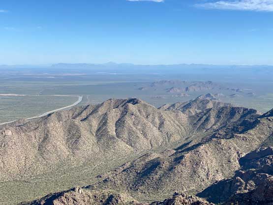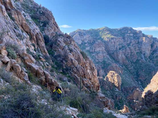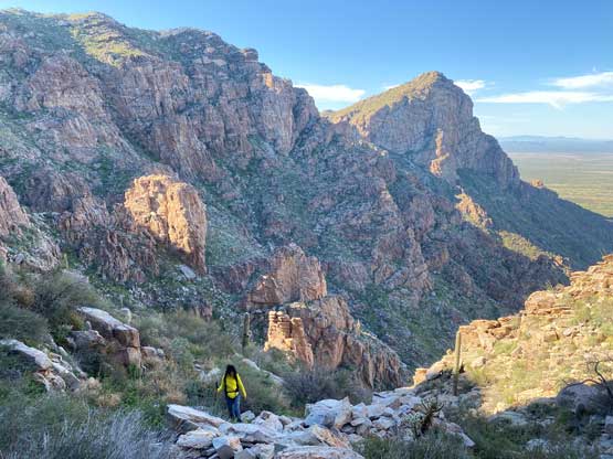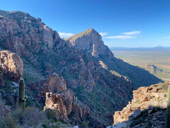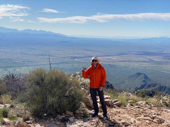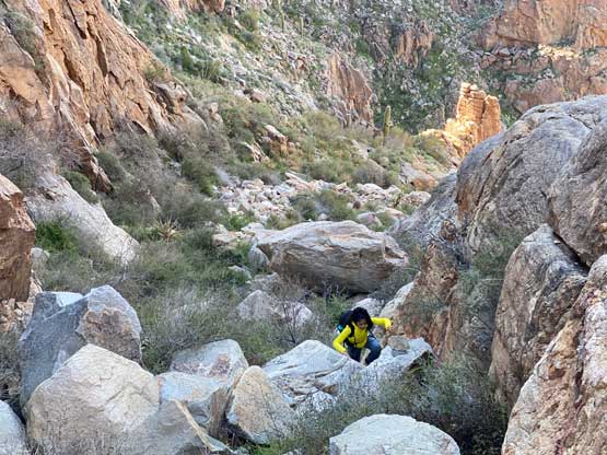 After a lengthy break on the summit updating our socials we decided to descend, following the exact same route we took. The descent was rather tedious and slow because of the bushy and scrambly nature of this route. I also down-climbed the class 3-4 optional steps for fun. The rest of the descent was very boring. Nikita and I stayed more in the wash/gully and probably did more bushwhacking and boulder-hopping than needed. I was too tired to bother checking the GPS frequently so we lost the path a few times. This was supposedly the only “great weather” day in this entire trip but this also meant it’s going to be very hot. We were overall in the Sonoran Desert in the middle of a sunny day. After finishing the descent we drove out of the dirt roads and then southwards into Tucson. Raphael made the suggestion to shop in REI and it wasn’t a bad call. We all got some new cloths. The rest of the day was spent driving farther south towards Miller Peak which would be our next objective.