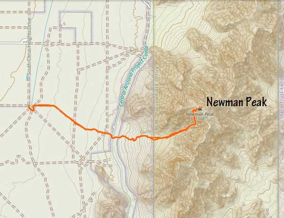 Newman Peak is one of Arizona’s P600m objectives right next to I-10 between Phoenix and Tucson but the access isn’t as straightforward as one might expect. This peak was used to be approached from the SE but the standard route seems to have shifted to the west side in recent years thank to some detailed beta on peakbagger.com. Either side requires driving on sandy roads such that a vehicle with decent clearance and/or AWD is recommended. The exact starting point on the west side access is largely determined by the current road conditions and the capability of the vehicle.