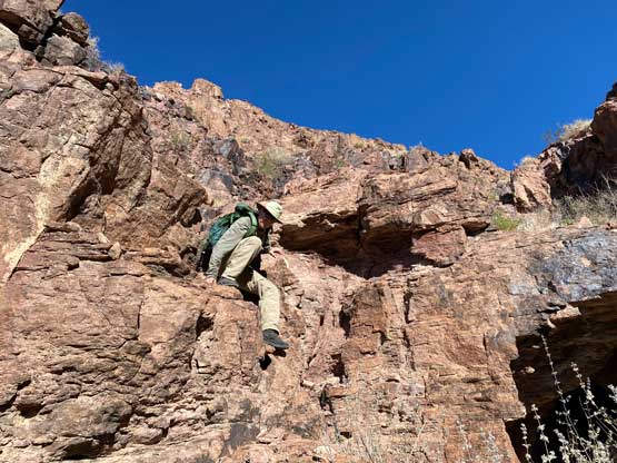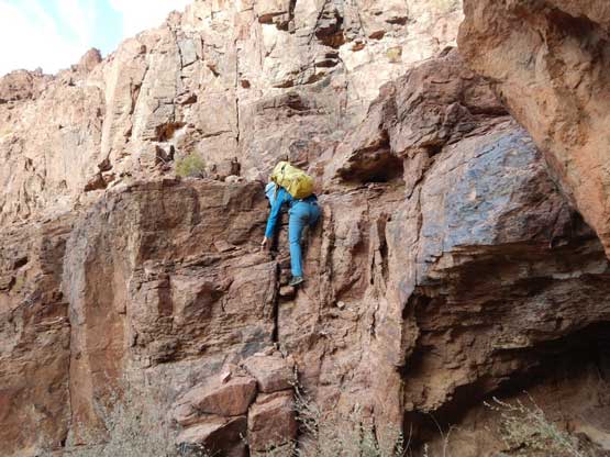 Me picking my class 3 route up the dry falls. Photo by Adam W.