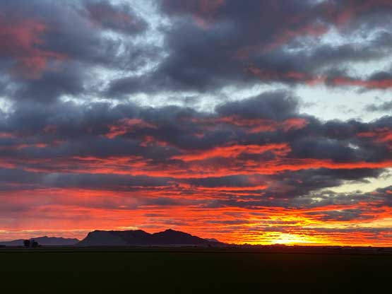 Matthias had also done his homework and his words were to drive in from the south. The three of us met in Wellton at about 6:30 am and drove north onto those dirt roads in two vehicles. About 1 km from the driveable end the road had become too steep/rough for Adam’s like, so we parked the Subaru and piled into Matthias’ 4Runner with monstrous tires. That vehicle is one of the best I’ve seen for mountainous accesses. We drove up and over one sketchy hill and some more rough spots and parked at where we were supposed to park. Apparently there’s some issues with this peak’s access so do your own research. Meanwhile the sky had been lit up by the Arizona’s gorgeous sunrise.