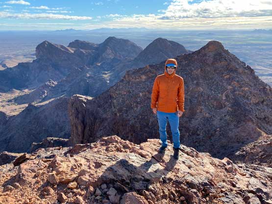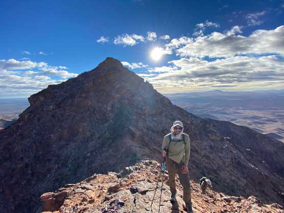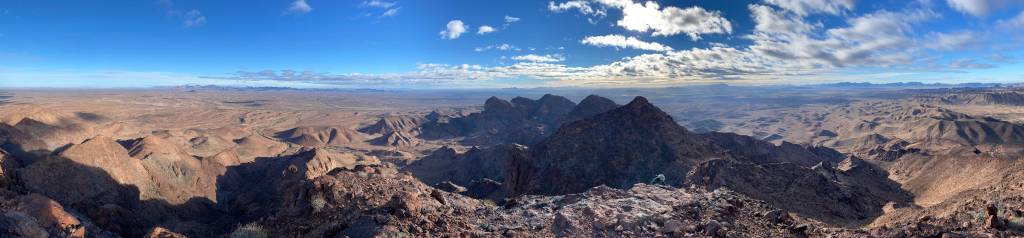 Red Bluff Mountain is a cool-looking but obscured peak off the I-8 corridor not too far from the city of Yuma. This peak also boasts over 300 m prominence. There had been next-to-nothing “beta” on the internet asides from a few “logged ascents” on peakbagger.com. None of those accounts were helpful in any fashion but one did mention “exposed scramble” as opposed to “rock climbing”. This peak had been on Adam’s list for a while and it didn’t take him too long to convince me to try. I generally do not like to gamble on the success so I did spend at least 1 hour zooming-in on various maps. I was confident that we could find a scramble route to the summit, but the decision was still made to carry a rope, harness and basic pros to give a wide range of contingency. Adam’s friend Matthias, another accomplished peak-bagger based in Phoenix decided to join us for two days starting on Red Bluff Mountain.