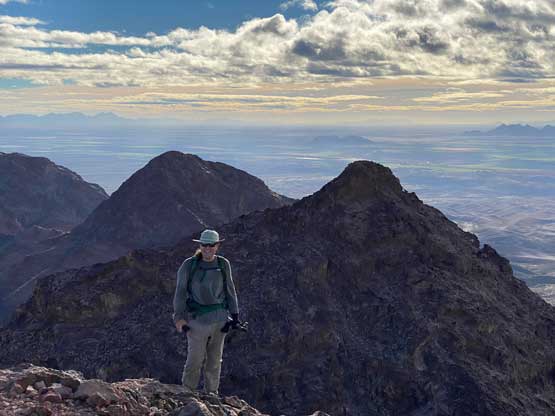 Red Bluff Mountain is a cool-looking but obscured peak off the I-8 corridor not too far from the city of Yuma. This peak also boasts over 300 m prominence. There had been next-to-nothing “beta” on the internet asides from a few “logged ascents” on peakbagger.com. None of those accounts were helpful in any fashion but one did mention “exposed scramble” as opposed to “rock climbing”. This peak had been on Adam’s list for a while and it didn’t take him too long to convince me to try. I generally do not like to gamble on the success so I did spend at least 1 hour zooming-in on various maps. I was confident that we could find a scramble route to the summit, but the decision was still made to carry a rope, harness and basic pros to give a wide range of contingency. Adam’s friend Matthias, another accomplished peak-bagger based in Phoenix decided to join us for two days starting on Red Bluff Mountain.