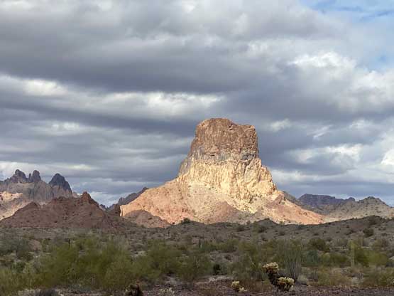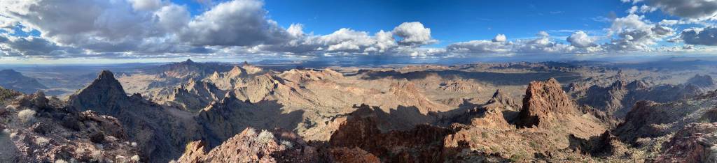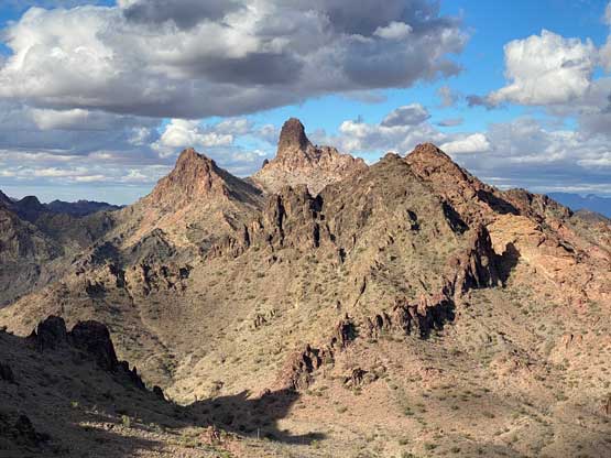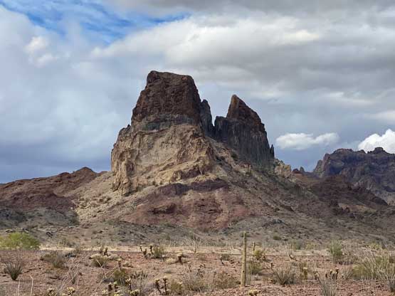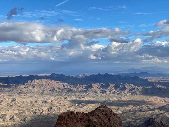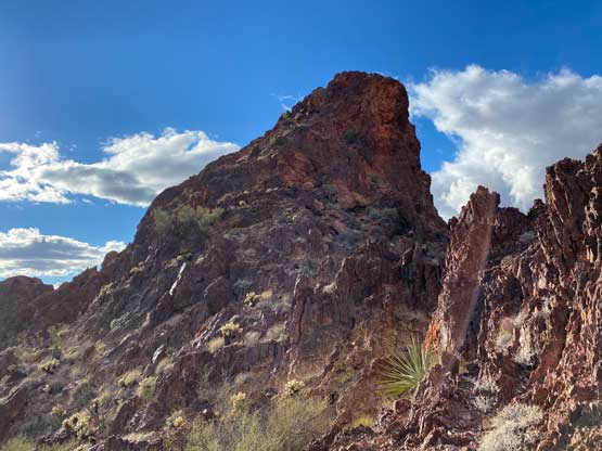 Thumb Peak is a remote summit in the middle stretch of Castle Dome Mountains about 50 miles to the north-east of Yuma in the state of Arizona. This peak is not as high as Castle Dome Peak itself, but still boasts over 300 m prominence and an iconic profile recognizable from far away. The hardest and the most unknown part of this ascent is the drive-in, as one must negotiate about 50 km of dirt roads (each way) with the second half being extremely rough such that it’s only passable in a vehicle no worse than Jeep/Tacoma/4Runner or better, an ATV. When Adam and I planned this objective we had little idea about the roughness of this access road so had we tried in Adam’s Subaru we would not have gone far. Thankfully Matthias joined us with his 4Runner with aggressive tires so we were set for this adventure.