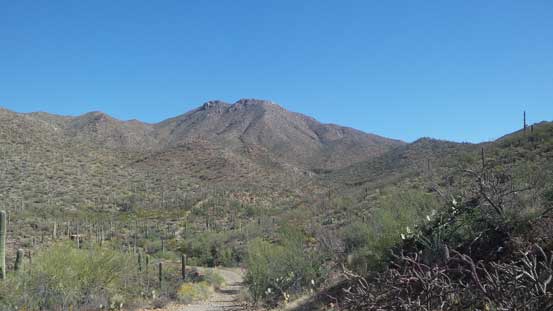 This was my last day in the Tucson area and I wasn’t particularly keen on pushing hard. The hot weather, the fact I had to drive northwards to Phoenix and the temptation of sleeping in saw me locking my objective on Wasson Peak. The elevation and mileage suggested it as a reasonable half-day outing. In the morning I slept in till whenever I wanted, leisurely checked out and then went for a nearby McDonalds for some food. It was already 9:30 am when I eventually started the hike and needless to say the sun was already beating down mercilessly.