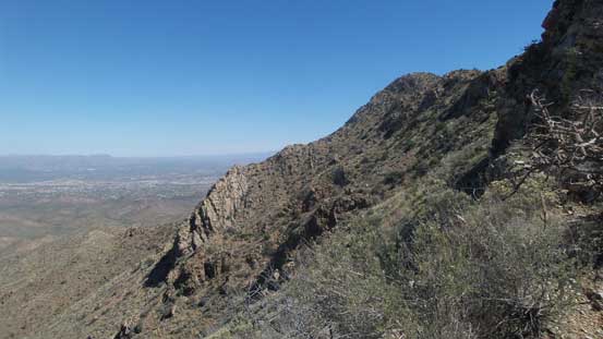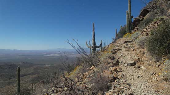One thing that makes this peak stands out is the endless Sonoran Desert scenery with saguaros everywhere anywhere. Eventually I got tired out taking those pictures so just went on. The plod through King Canyon seemed like quite a drag but mostly due to the temperature. The bulk part of the elevation gain didn’t start until a couple miles into the trip when the trail ascends out of King Canyon towards a high saddle where it’ll meet Sweetwater Trail. I took a long break just above the saddle as I was seriously running out of energy in this heat. Most others hikers were coming down already suggesting I should have started a couple hours earlier.