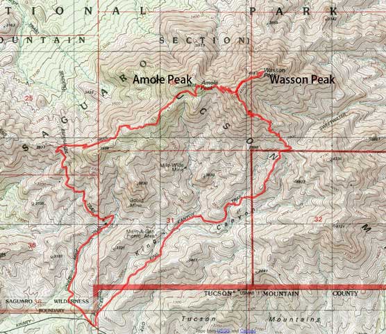Wasson Peak and Amole Peak hiking route. GPX DL