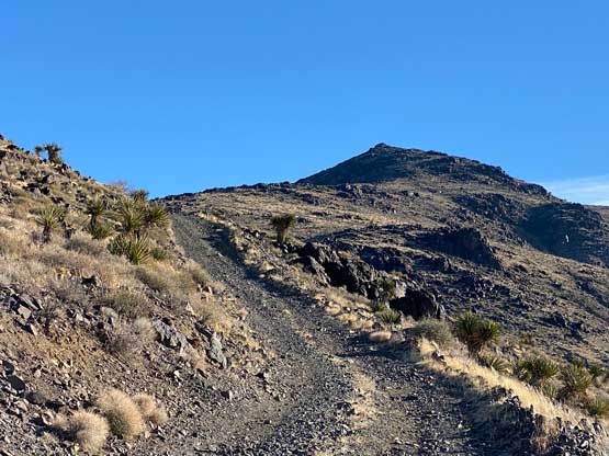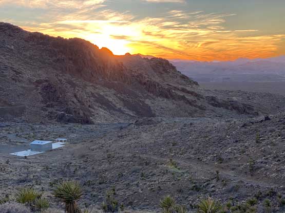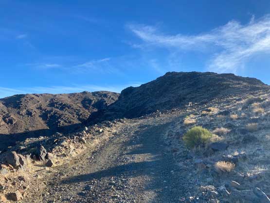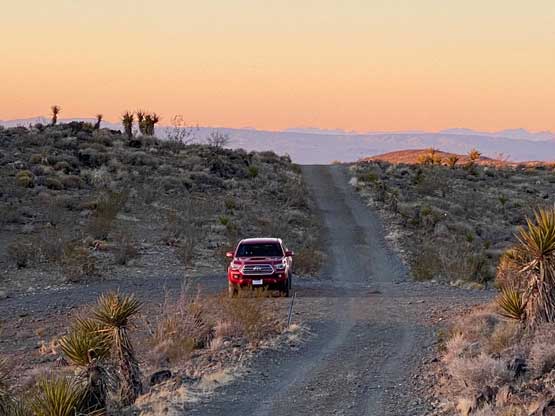 The time was getting on, so I hassled on the descent. As much as I liked to watch sunset from the summit I needed to get moving to not run behind schedule. On the descent I just plodded down the road but took one short-cut to eliminate one unnecessary switchback. I made back to the truck around sunset and subsequently drove down the rough roads. The downhill driving was always easier than on the way up and in short time I was back onto the freeway.