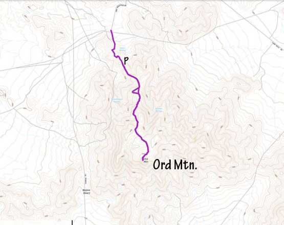 Ord Mountain is a broad and dome-shaped massif in SE California that boasts almost 1000 m prominence. This peak locates to the north of San Gorgonio Mountain in the desert area. A road goes all the way to the summit but the road is gated about 4 km from the top. The access is from the north near Barstow and the driving on dirt roads is long and somewhat complicated. Thankfully the roads are all correctly marked on the Gaia map so the navigation was not a problem. To drive to the gate requires a 4×4, high clearance vehicle with good tires but those without could still park about 1 km short and walk a longer distance.