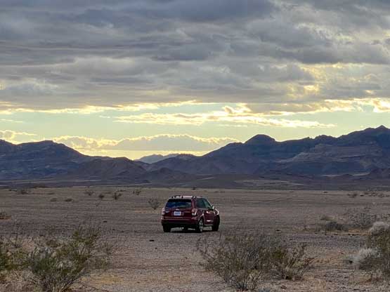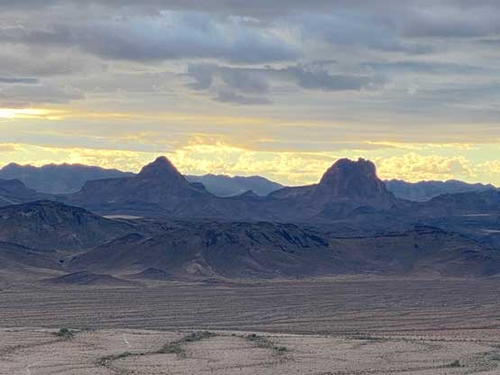 The ascent of Pyramid Butte was not on the agenda when Adam and I headed south from Las Vegas for 12 days of peak-bagging. We managed to leave Las Vegas around noon just after the storm stopped but the forecast was still calling for rain in areas to the south. The objective was to drive a few hours to Blythe, CA and car-camp near Thumb Peak, but the drive wouldn’t consume all of the daylight hours. I noticed this Pyramid Butte on the maps that definitely boasts over 100 m prominence, but strangely this peak was not on peakbagger.com nor Lish of John. Adam managed to add this peak into peakbagger.com database prior to departure.