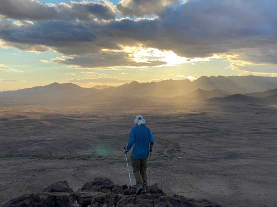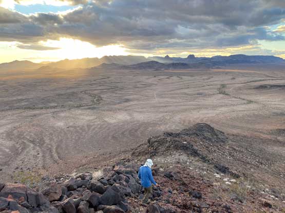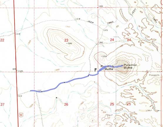 The ascent of Pyramid Butte was not on the agenda when Adam and I headed south from Las Vegas for 12 days of peak-bagging. We managed to leave Las Vegas around noon just after the storm stopped but the forecast was still calling for rain in areas to the south. The objective was to drive a few hours to Blythe, CA and car-camp near Thumb Peak, but the drive wouldn’t consume all of the daylight hours. I noticed this Pyramid Butte on the maps that definitely boasts over 100 m prominence, but strangely this peak was not on peakbagger.com nor Lish of John. Adam managed to add this peak into peakbagger.com database prior to departure.