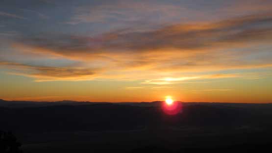 I like the slopes of Rogers Peak turning completely red at sunrise.