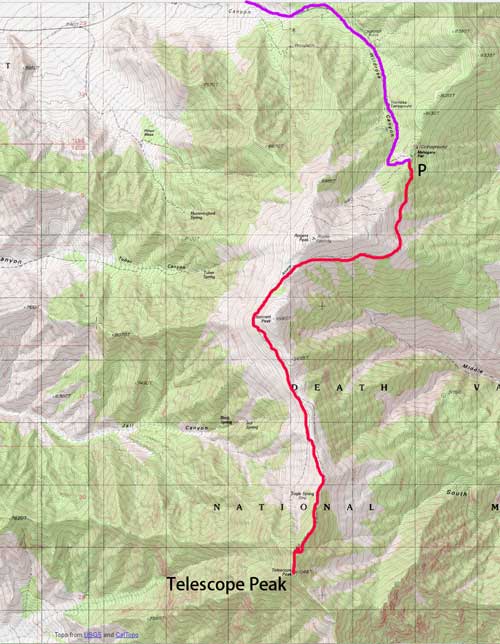 The “ultra-prominent” Telescope Peak rises a shear 11,000+ feet above Badwater Basin of Death Valley National Park which itself is the lowest point of North America. The view is far-reaching from such a major highpoint and in fact, the peak was named because “you could see no further with a telescope”. The standard route is nothing fancier than a “hike” on a well-maintained trail although to reach the trail-head at Mahogany Flat campground a 4×4, high clearance vehicle is required. The summit of Telescope Peak boasts little interest from mountaineering perspective but just like many other “sky islands” in SW desert states it draws significant attention from those “real” peak-baggers.