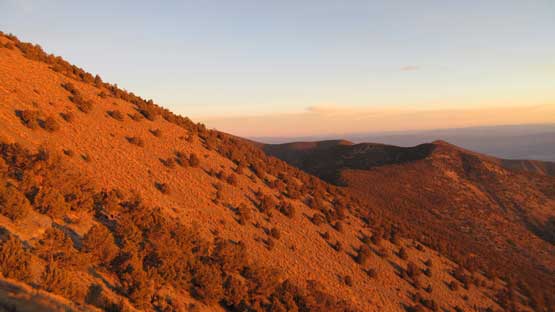 I like the slopes of Rogers Peak turning completely red at sunrise.