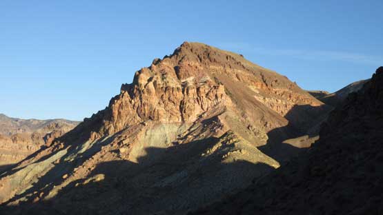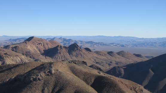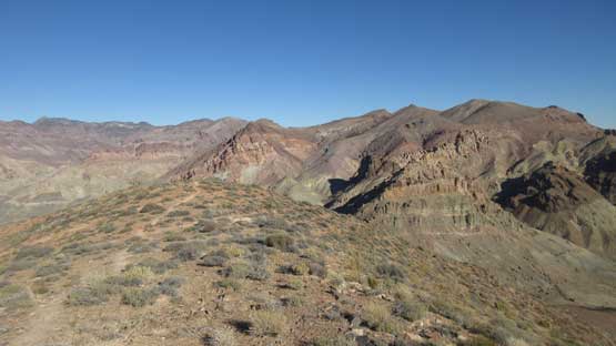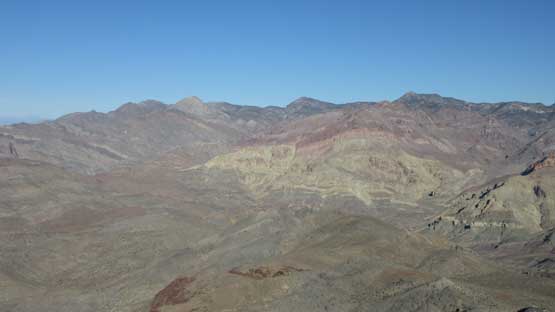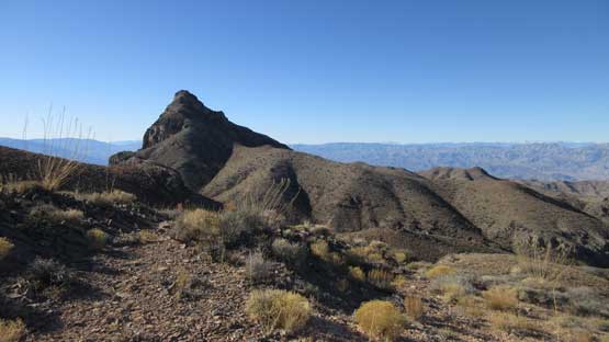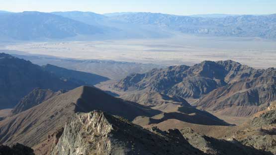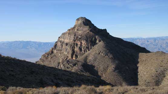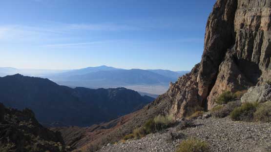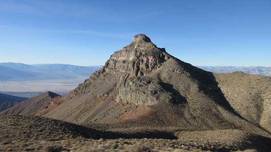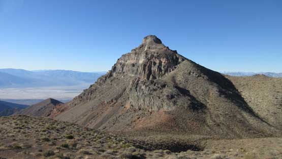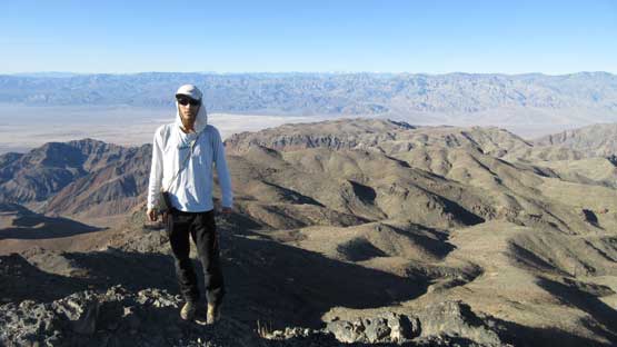 The main peak proper looks intimidating but also exciting. The only downside of this “ridge option” is that we had to lose about 100 meters of hard won elevation down into the saddle separating the main peak and this NE highpoint. That was not a problem as we were both fresh. The ascent involves some minor route-finding but should not exceed “class 2” by modern standard. There wasn’t much of hands-on scrambling at all despite the fearsome profile. The summit was then attained and this was my first ever time looking down into the Death Valley.