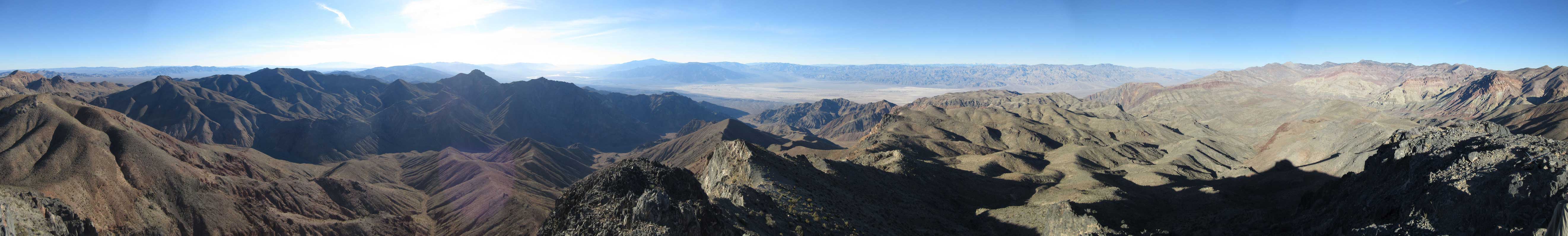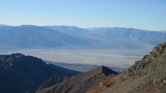 The main peak proper looks intimidating but also exciting. The only downside of this “ridge option” is that we had to lose about 100 meters of hard won elevation down into the saddle separating the main peak and this NE highpoint. That was not a problem as we were both fresh. The ascent involves some minor route-finding but should not exceed “class 2” by modern standard. There wasn’t much of hands-on scrambling at all despite the fearsome profile. The summit was then attained and this was my first ever time looking down into the Death Valley.